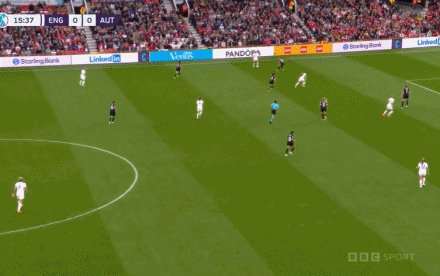 16'英格兰前场抢断,柯比助攻米德打进本届欧洲杯首球!1比0!